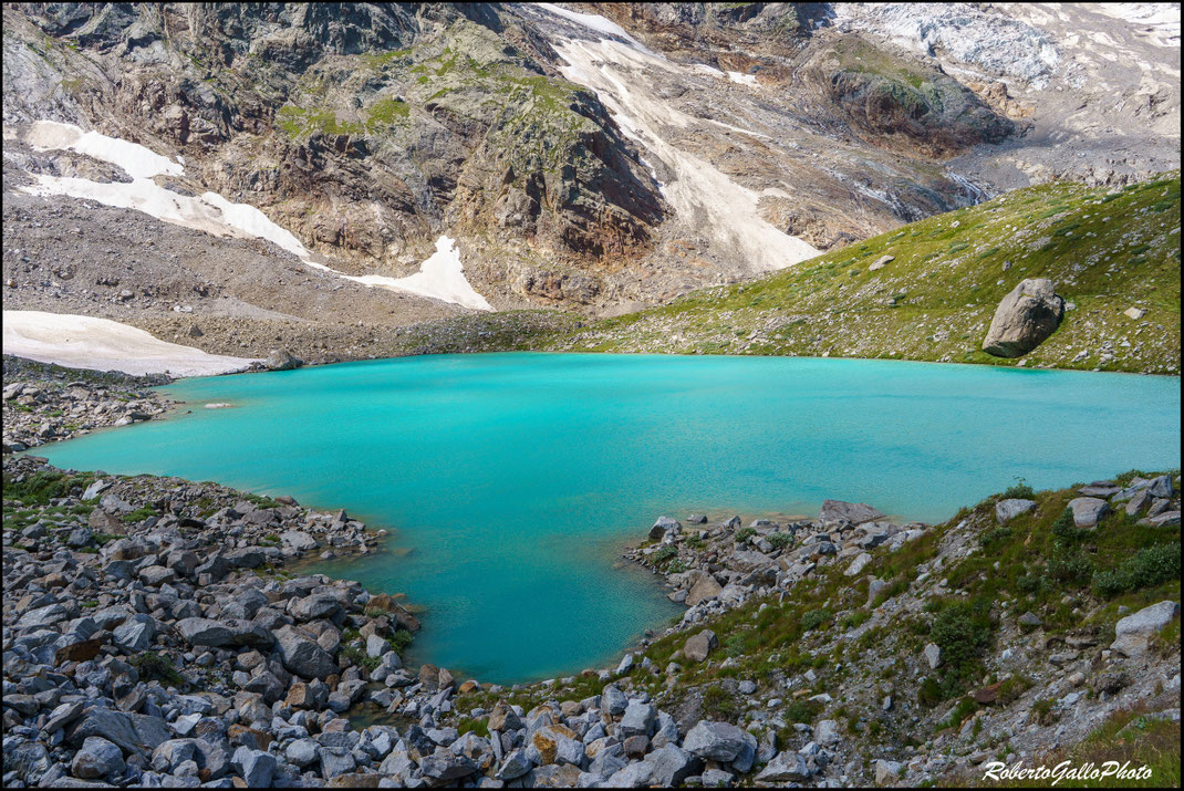 2025 - Il Lago delle Locce - situato a 2380 m. - è un luogo di straordinaria bellezza situato a Macugnaga, alle pendici del maestoso Monte Rosa. Questo lago glaciale si trova ai piedi del Ghiacciaio delle Locce, dalla parete est del Monte Rosa, la più alta parete delle Alpi.